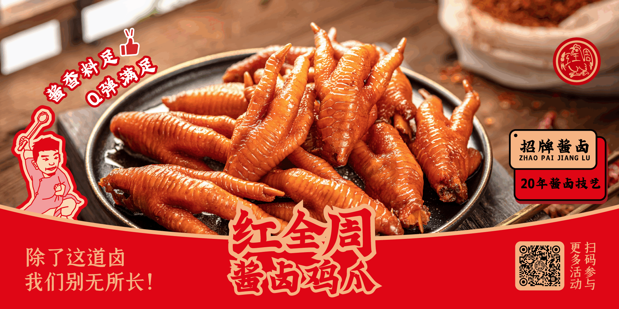 我國的鹵味歷史悠久,最早追源于先秦時期,酒和糟已廣泛用于膳食中,到了宋代就有了鹵料、醬料、糟料的配方。鹵制、糟制技術在飲食中得到了具體運用。古往今來,人們對鹵味的色澤美觀,香鮮醇厚,軟熟滋潤,贊不絕口。如今,鹵味的方便快捷給現代人帶來了良好的消費體驗,更符合當代人們的生活節奏。因此在餐飲行業中,鹵味市場已經受到大部分消費者的認可,鹵味的商機也被不少的人所認知。 洪瀨紅全周雞爪在正式注冊之前,創始人張福來,便經歷了多年的挑擔走街串巷、擺攤設點的歷程。于2012年11月正式注冊成立了福建泉州市紅全周食品有限公司,憑借著他獨門秘方及獨特的鹵制工藝,發展到了如今的加盟連鎖企業。多年的銷售經驗加上秘制香料,使紅全周深受廣大消費者的喜愛。